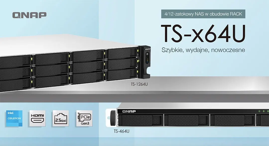 Alimenté par un processeur quad-core Intel® Celeron® N5095 (capable de passer à 2,9 GHz), le TS-1264U-RP comprend deux ports 2,5GbE RJ45 et l’Agrégation de ports pour une bande passante combinée jusqu’à 5 Gbit/s. La sortie HDMI™ 4K intégrée permet d’afficher le contenu multimédia et les machines virtuelles.