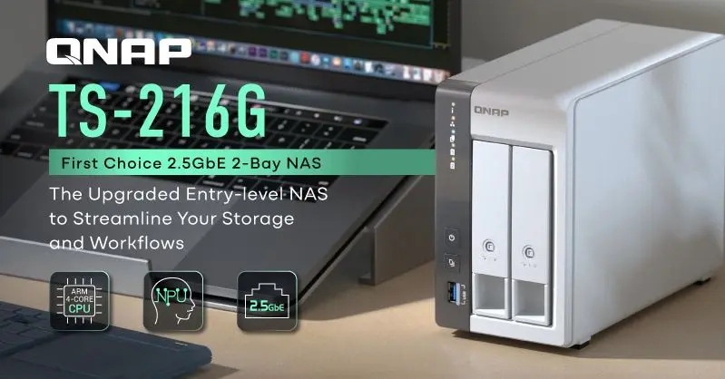 QNAP TS-216G Serveur NAS 2 baies, Processeur ARM Cortex-A55 à 2 GHz (Quad-Core), 4 Go de RAM