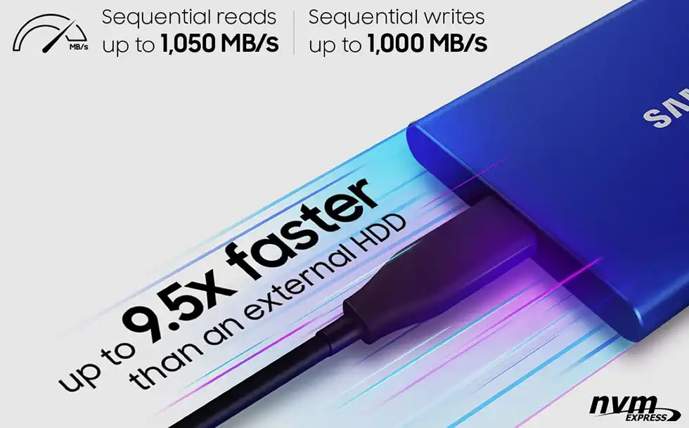 Le T7 est fourni avec des câbles USB Type-C à Type-C et Type-C à Type-A, facilitant son utilisation sur une variété d’appareils. Passez facilement de Windows à macOS, des smartphones aux tablettes, ou même aux consoles de jeu, sans rencontrer de problèmes de compatibilité.